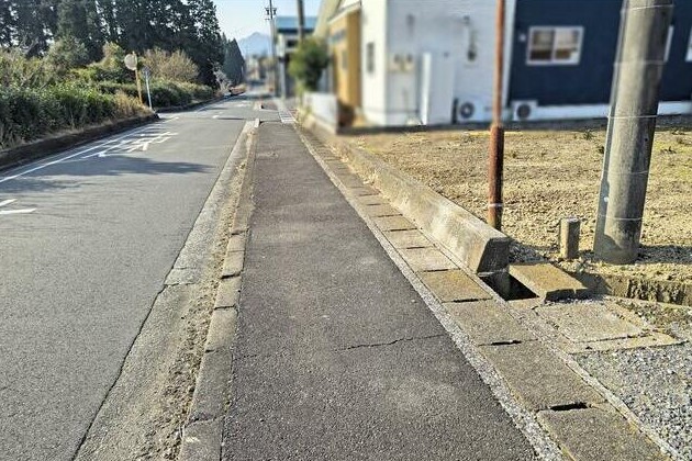 東側公道約4.9m+歩道約1.1m 間口約9m ※歩道段差あり・乗り入れ加工必要 |
