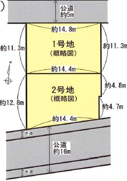 ①号地:北側約5m ②号地:南側約16m |